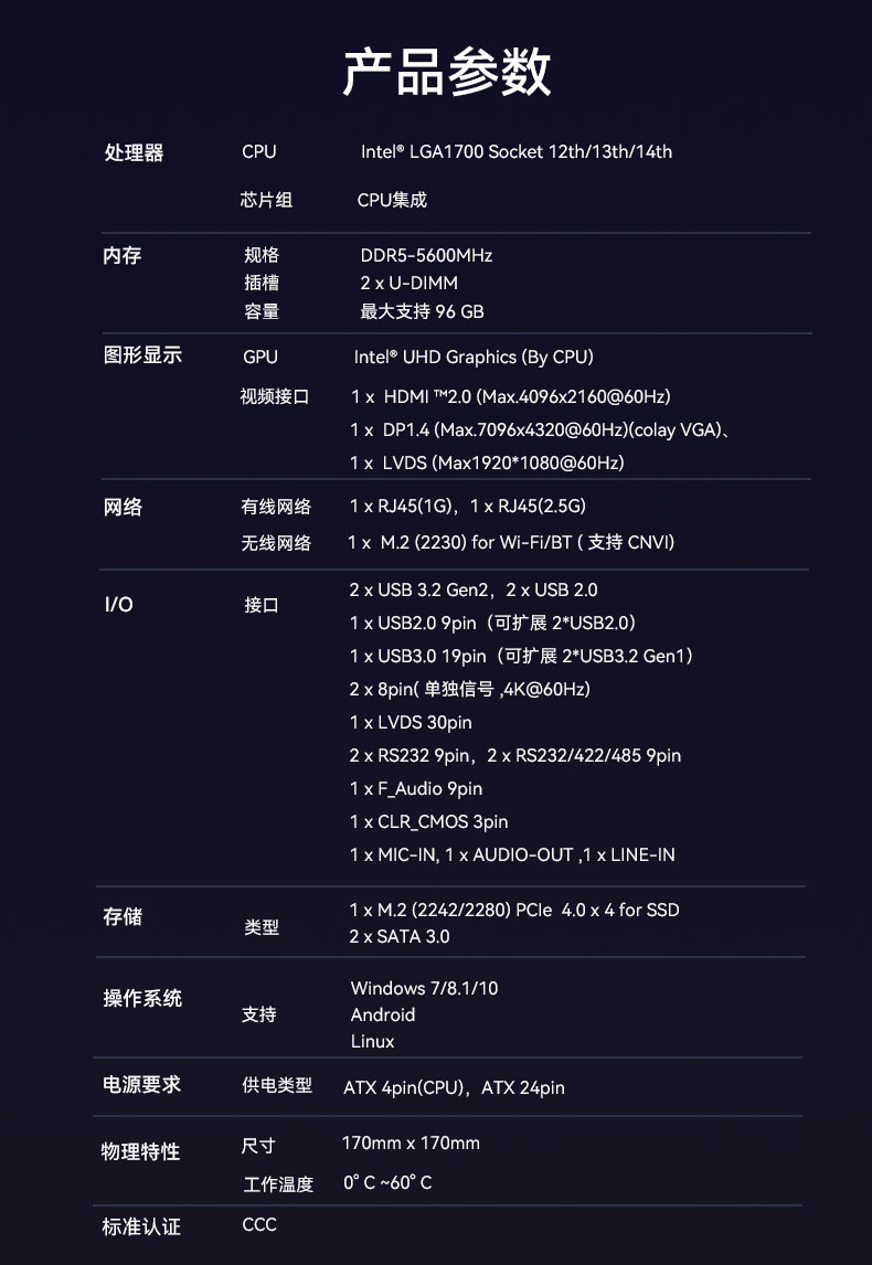 IB5-8131配备了全面的I/O端口阵列包括USB、显示等接口;采用6+1相供电,即使在长时间高负载工作时也能维持稳定运行,支持全天候24小时连续运转,为自助服务终端提供了最强大脑。
