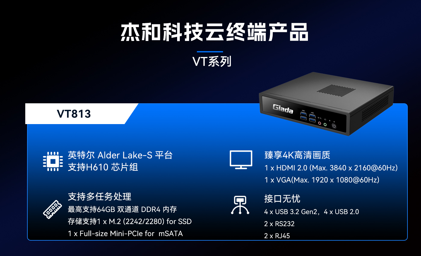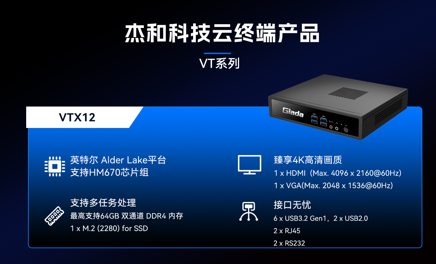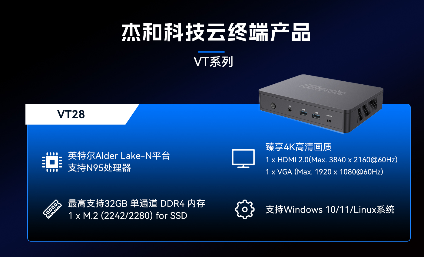 除此之外南宫NG·28(中国)相信品牌力量科技云终端VT系列产品线还提供多样化的硬件配置选择,涵盖多种处理器架构、内存容量、存储设备和接口类型,满足不同应用场景的个性化需求。