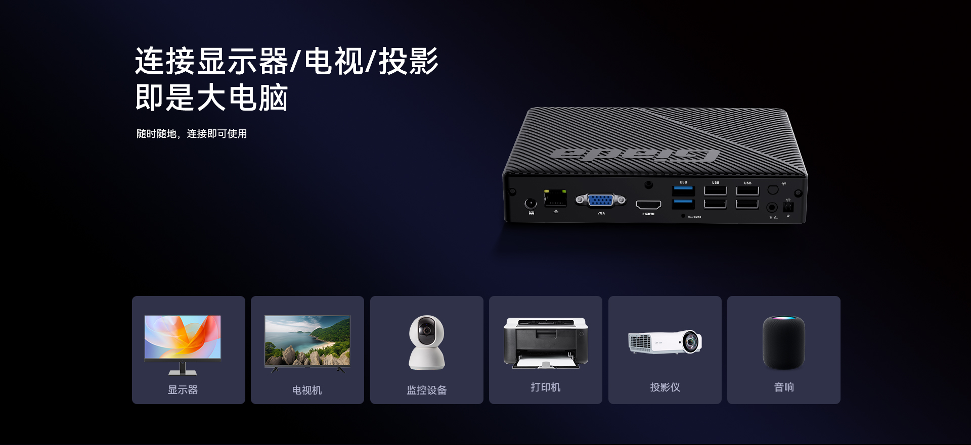 1 x HDMI,1xVGA双视频接口输出,支持4K @60Hz视频输出
